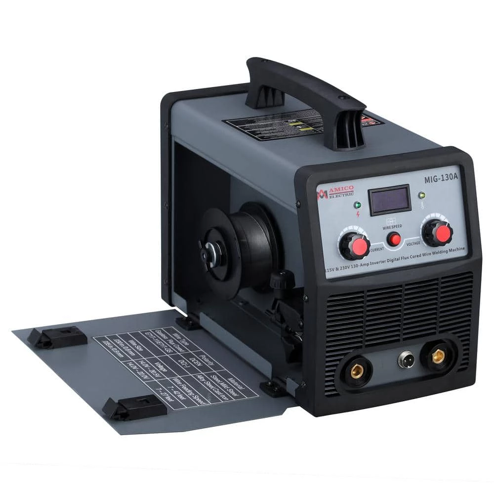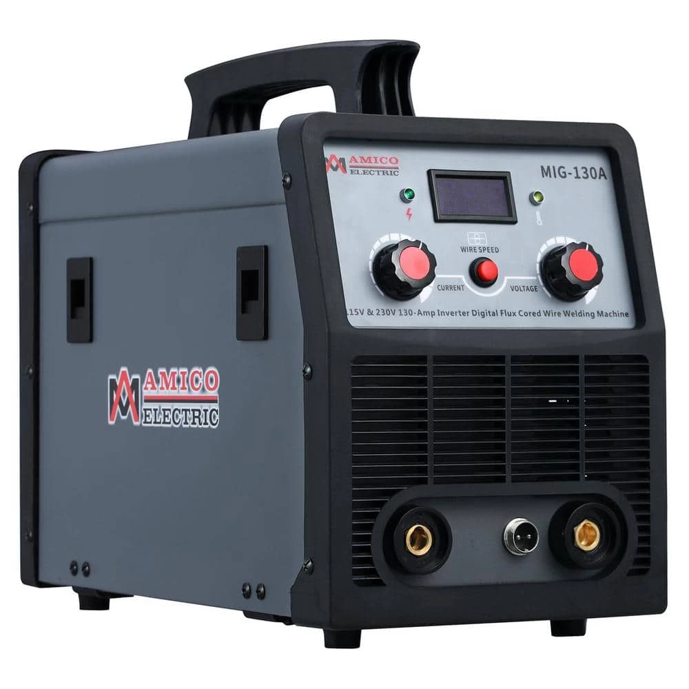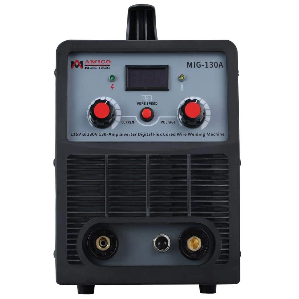 - MIG-130A has a beautiful appearance and incorporates exquisite production technology. It is manufactured in accordance with all industry standards. The output current is 130A at 110V and 220V. Both 0.030″ and 0.035″ flux-cored wires can be used. The machine is very light and has a user-friendly design, making welding work easy and perfect. This is an ideal machine for home maintenance, professional work, and every task you require.