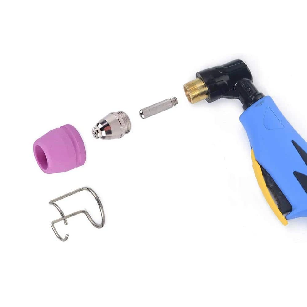 - 40-pieces torch nozzles, 40-pieces torch electrodes, 10-pieces ceramic shield cups, 10-pieces wire spacer guide, total 100-pieces of consumables