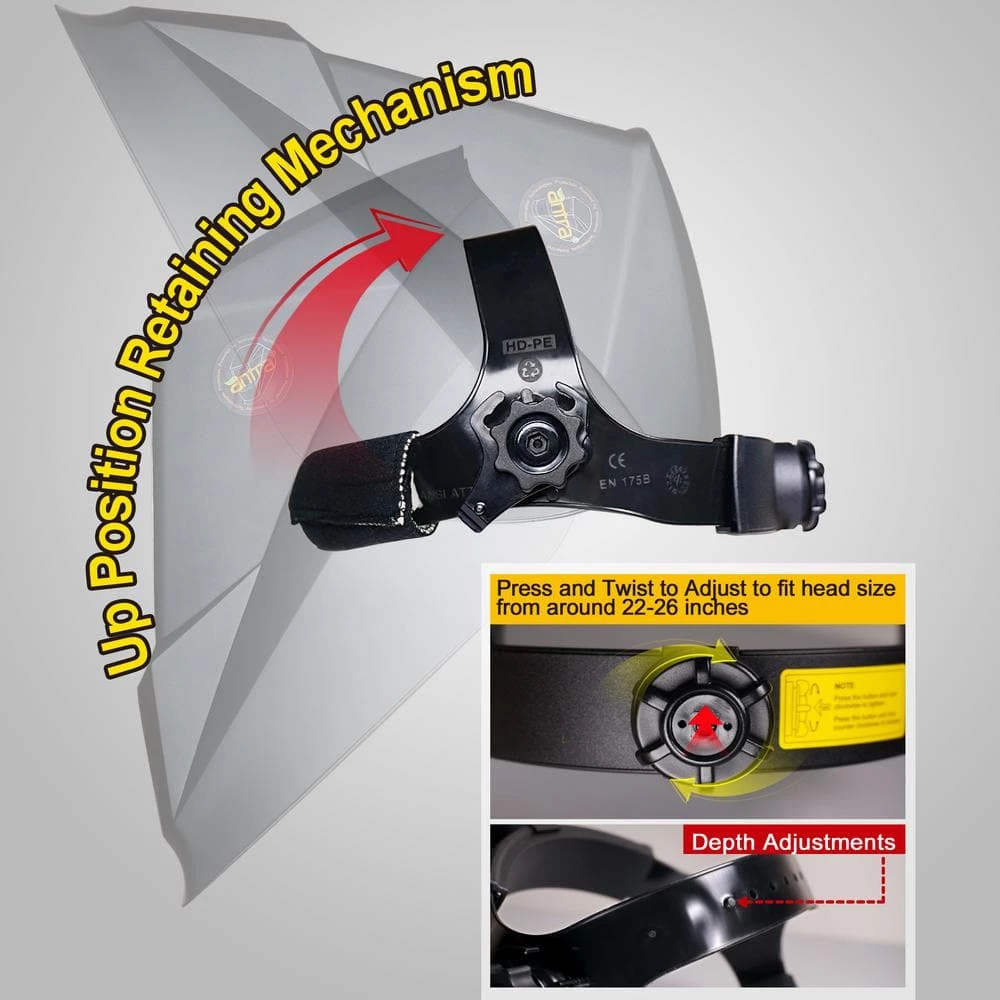 Antra AH7-860 Series welding helmet is featured with the smart chip controlled 4 sensor auto darkening lens, which is extremely fast responsive to electric arc from TIG, MIG, MMA or Plasma applications. The large viewing area 3.86 in. x 3.50 in. provides a better vision of the whole welding process, which ensures a better finish of welding or cutting. This lightweight welding helmet is so versatile that it can be used on grinding, cutting and welding applications. It is a perfect upgrade for goggles and fixed shade glass welding helmet at a fraction of cost.
