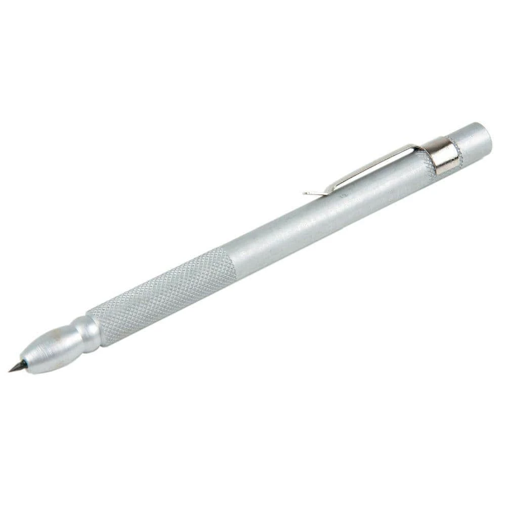 This Lincoln Electric tip scribe features sharp tungsten carbide tips that easily cut into hard surfaces. It leaves clear marks on metal, glass, plastic and tools. This lightweight tool includes a strong aluminum handle and diamond knurling on the handle for a comfortable grip. Use it as easily as you would a pencil, as its compact and convenient design travels well.