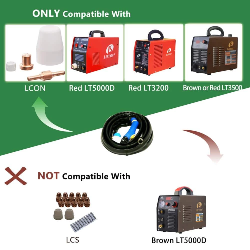 The Lotos LT5000D plasma cutter is a popular tool for home DIY and light duty business projects. This CL133 torch is a replacement for the Red Color LT5000D, Red & BROWN Color LT3500 plasma cutter torch. Cannot work with BROWN Color LT5000D 1 set of consumables is installed on the torch head.