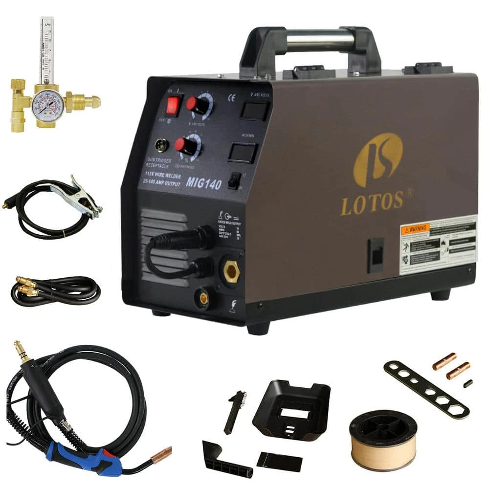The Lotos MIG140 is now available with 2T/4T switch and the 2 digital displayers help customers adjust wire feeder speed and welding voltage more precisely. The new designed ground cable quick connector makes easy switch between plus/minus. The new Lotos MIG140 features a 140 Amp MIG welder that can weld at industrial quality and performance at a very affordable price. The most versatile and perfect welder for do-it-yourself home users as well as professional users. The Lotos MIG140 is also spool gun capable for welding aluminum(not include in the package, needs to purchase separately). It can be easily connected to your existing 110-Volt wall outlet and quickly setup within 10 minutes or less. It handles industrial standard 4 in. or 8 in. wire spools and incorporates a thermal overload protection system to protect your welder.