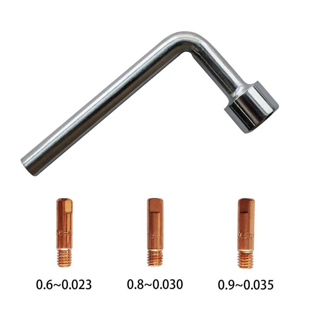 - Includes: MIG torch, ground clamp cable, gas hose, argon regulator, 0.023 in. (0.6 mm) and 0.035 in. (0.9 mm) contact tips, welding mask and wire
