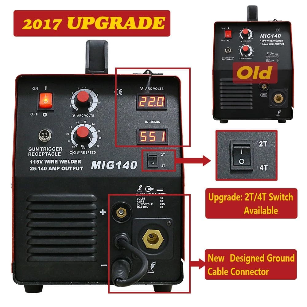 - 2T/4T switch is now available; customer can adjust the wire feeder speed and welding voltage more precisely using the 2 digital displays; new designed ground cable quick connector; aluminum wire feeder stability