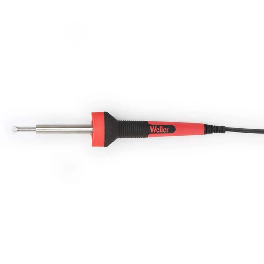 The Weller SP40NKUS Standard Duty LED Soldering Iron Kit has co-molded soft grip ribbed handle design for maximum comfort and reduced slippage. The wire connection is less than 12-AWG. The high-performance ceramic heater technology will heat up to 900Β° F.